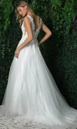 Nox Anabel JR930PW – Sleeveless Plunging V-neck Wedding Gown