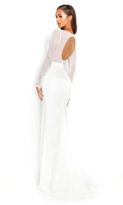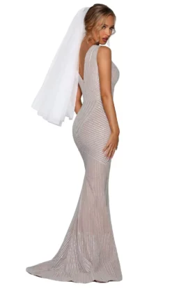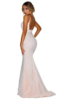 Portia And Scarlett – PS1910 Plunging V Neck Fringe Mermaid Dress