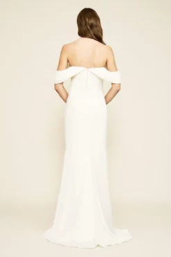 Tadashi Shoji – Amishta Off-The-Shoulder Crepe Gown ALG19170LBR – 1 Pc Ivory In Size 4 Available