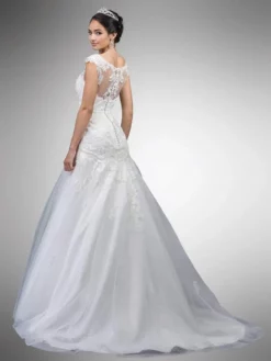 Dancing Queen Bridal – 22 Floral Appliqued Contoured Illusion Trumpet Gown