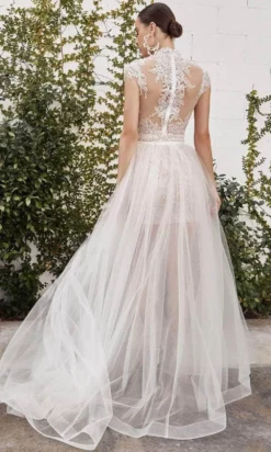 Andrea And Leo A1082W – Lace Applique Cap Sleeve A-Line Dress