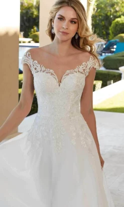 Mori Lee Bridal 5987 – Embroidered Straight Across Wedding Dress