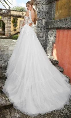 Mori Lee Bridal 5980 – Off Shoulder Bridal Gown With Petal Train