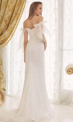 Nox Anabel – E441 Off Shoulder Appliqued High Slit Bridal Gown