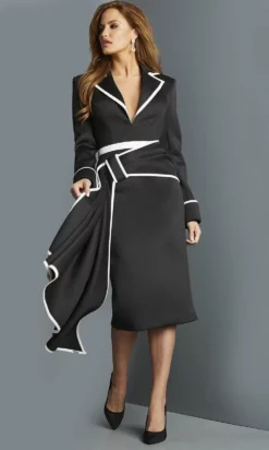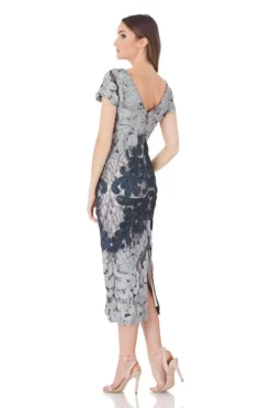 JS Collections 865626 – Two-Toned Lace Embroidered Midi Dress