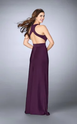 La Femme – 23655 Sleeveless High Neck Front Keyhole Cutout Jersey Dress