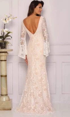 Da Vinci – Sheer Long Sleeve Lace Bridal Dress 50516 – 1 Pc Ivory/Nude In Size 12 Available